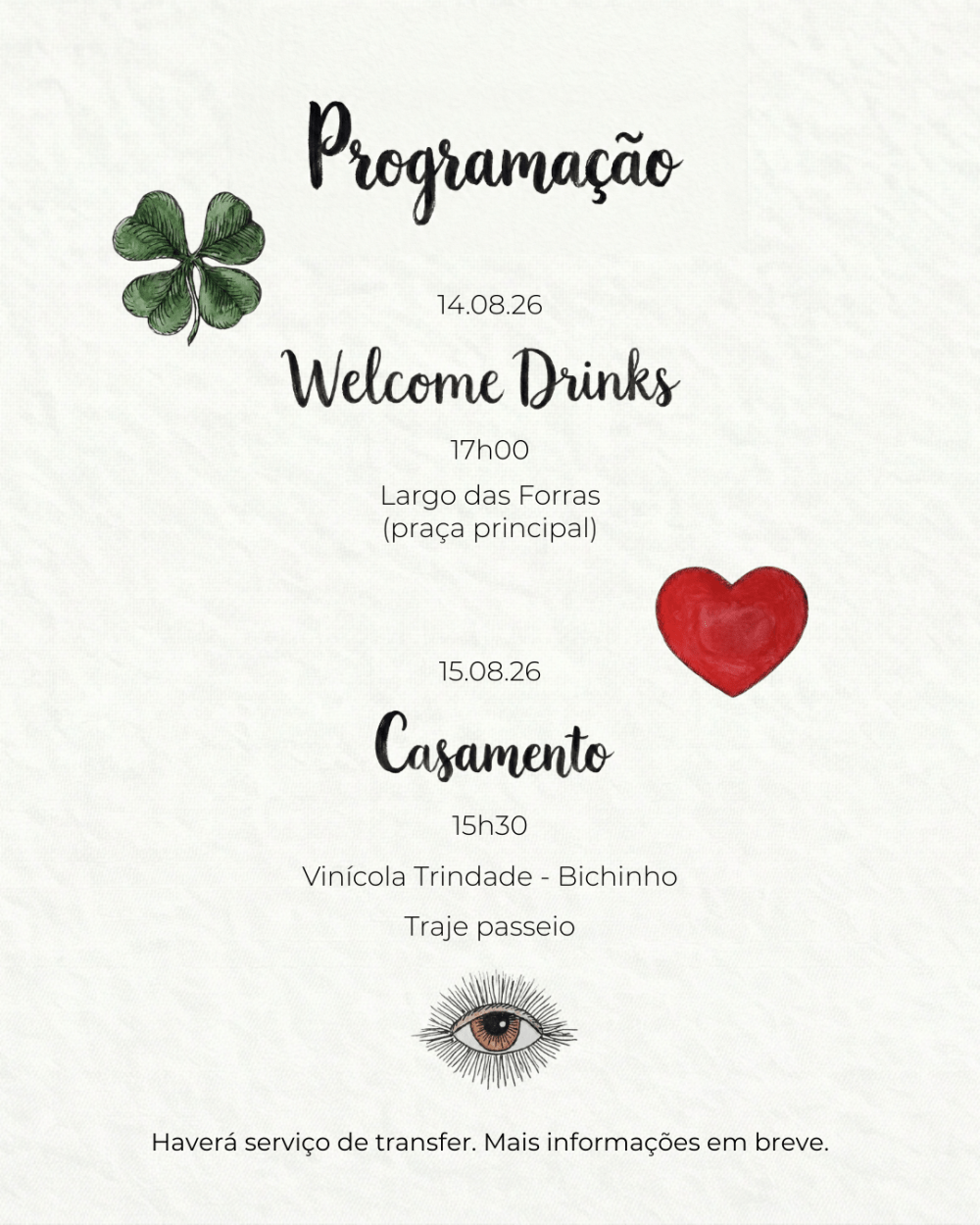 Temos diversos recursos que irão ajudá-los na organização do grande dia! E o melhor? Nosso site é gratuito!